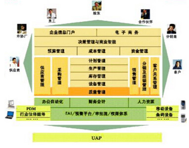 用友软件公司在深入研究电子电器行业生产经营特点的基础上,结合电子行业管理专家经验,采用最新技术,在标准ERP系统的基础上做深入行业化开发,构建了一整套适应中国电子电器制造企业运营特点的全面ERP解决方案,为众多电子电器企业提升企业的运作竞争力提供了管理上的强大手段和工具。帮助电子电器制造企业快速适应市场变化,轻松处理海量信息,协调销、产、供、财、人多方关系,快速出击、抢占先机。