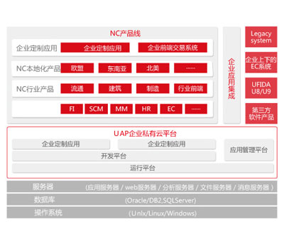 NC产品线包括NC核心应用产品、NC行业产品、NC本地化产品以及企业客户定制应用等。通过集成平台,可实现与客户现有应用系统的整合。