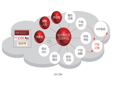 越来越多的产品粉丝将会参与厂商产品设计过程、制造过程和服务过程, C2M 模式(Customer-to- Manufactory)能够帮助企业实现产品高度精准定位与快速更新换代。顾家家居、新日电动车等用户探索C2M应用逐步实现消费产品的“私人定制”。 U9系统通过与多系统集成,从搜集消费者需求到产品设计、从物料需求到生产排产,从完工入库到物流发货,全程数据共享、协同。 顾家C2M模式: