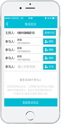 呼叫任意号码加入电话会议,谈业务,开例会,解决问题,想聊什么聊什么。