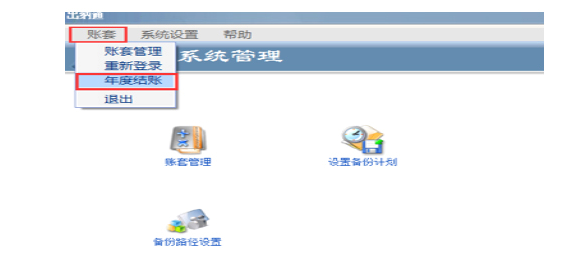 2. 点击上方的菜单“账套”-“年度结账”