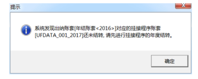 2.如果出纳账套和总账账套才能做年结。否则就会有下面的提示: