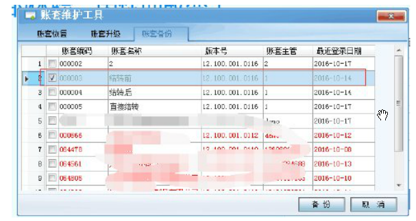 b、备份账套(从系统管理中备份或用“账套维护工具”备份)