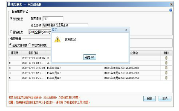 c、账套校验(将b步骤中备份的账套恢复进T+软件进行检查,查看能否成功恢复来判断备份文件是否正常)