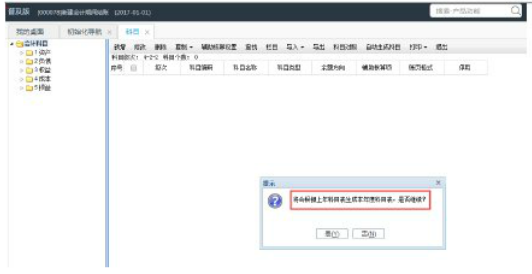 (3)弹出对话框提示:将会根据上年科目生成本年度科目表,是否继续,点是即可,如下图所示: