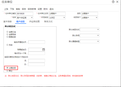 3.分期收款计划启用后,若存在有分期收款计划的订单或者默认收款方式为分期收款的往来单位,则不允许反启用。