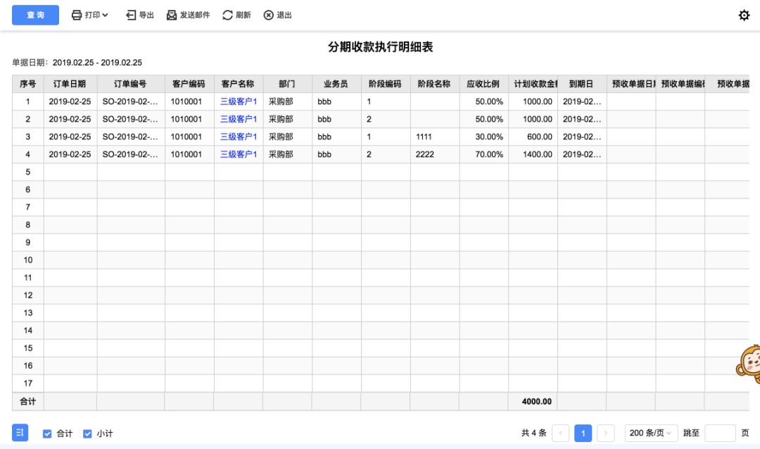 第一步:点击销售管理里的分期收款执行明细表,打开;