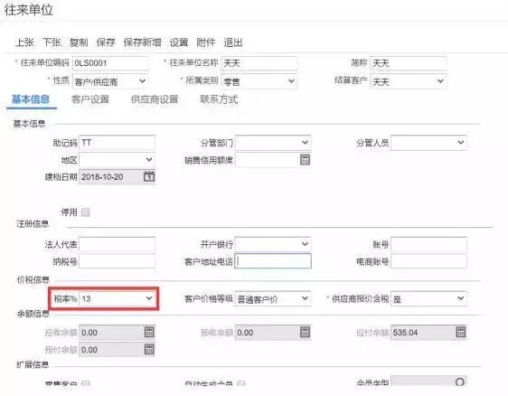 往来单位中的税率