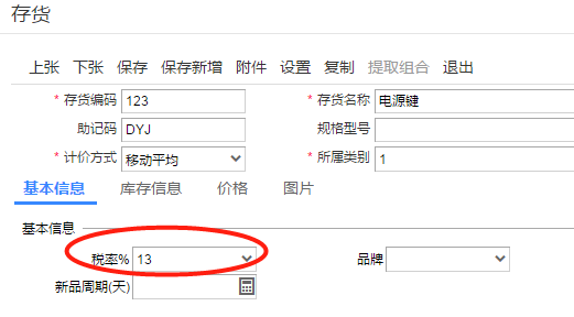 存货档案中的税率