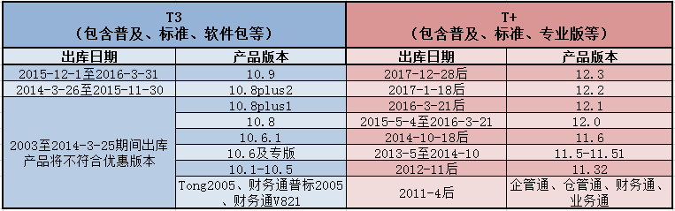 通知中提到的软件产品序列,多数版本是早前发版上市的产品,一些不能适应主流的WIN7\WIN10环境,一些功能跟不上现行新政,一些功能不能满足企业发展,为了企业的后续成长,建议升级新版本,同时之前已停止升级版本将不能享受优惠,通过防伪查询后具体版本可参考以下: