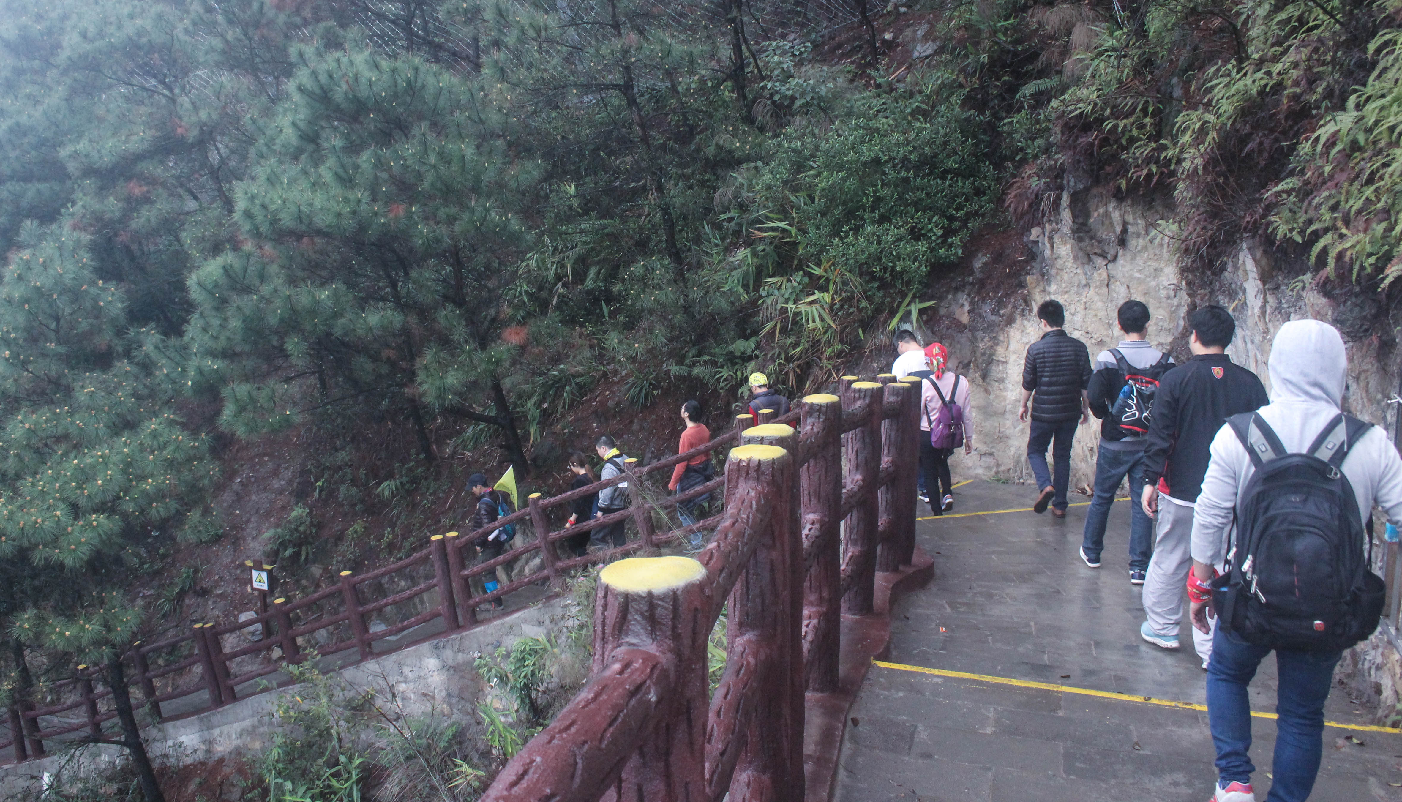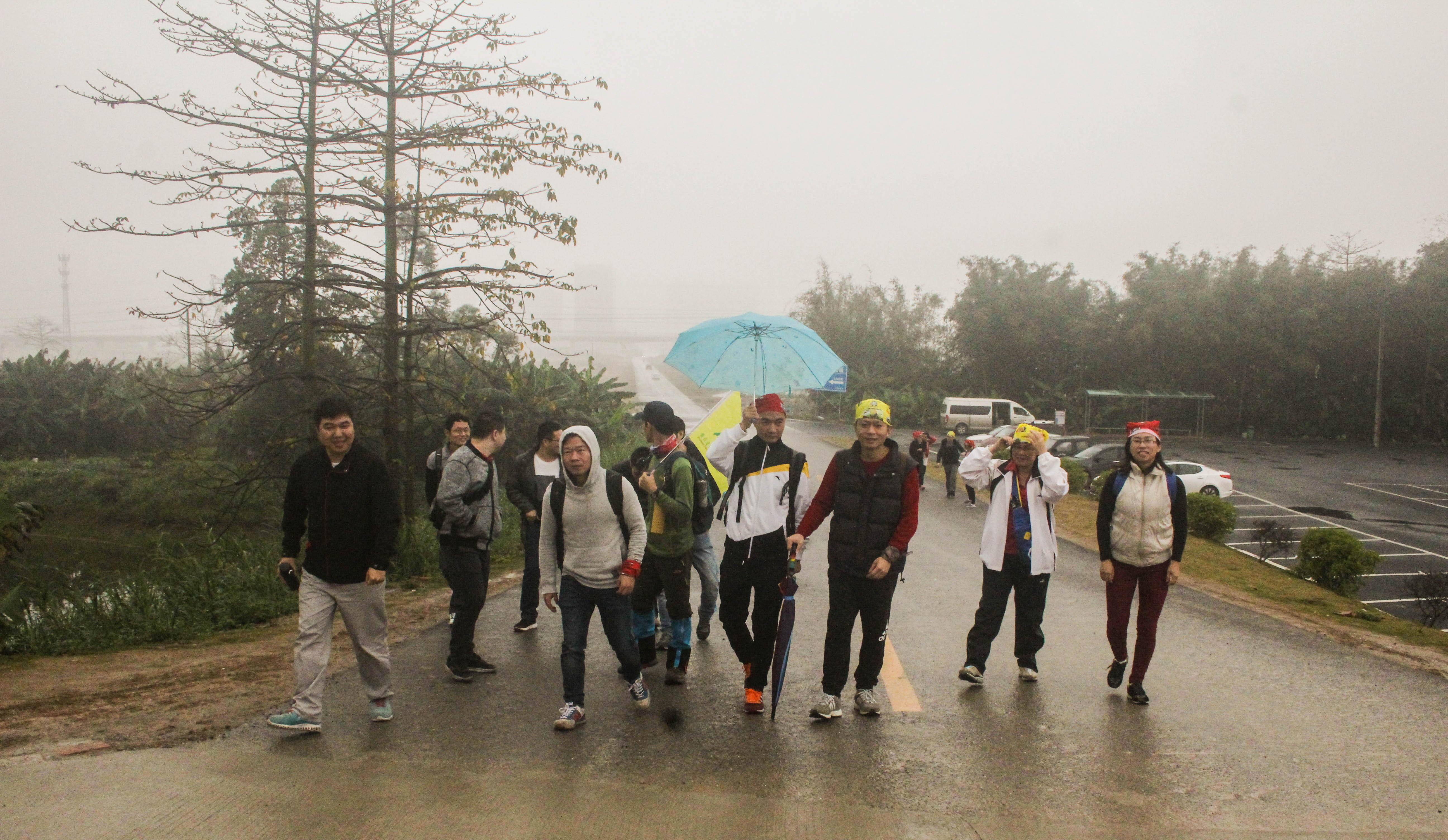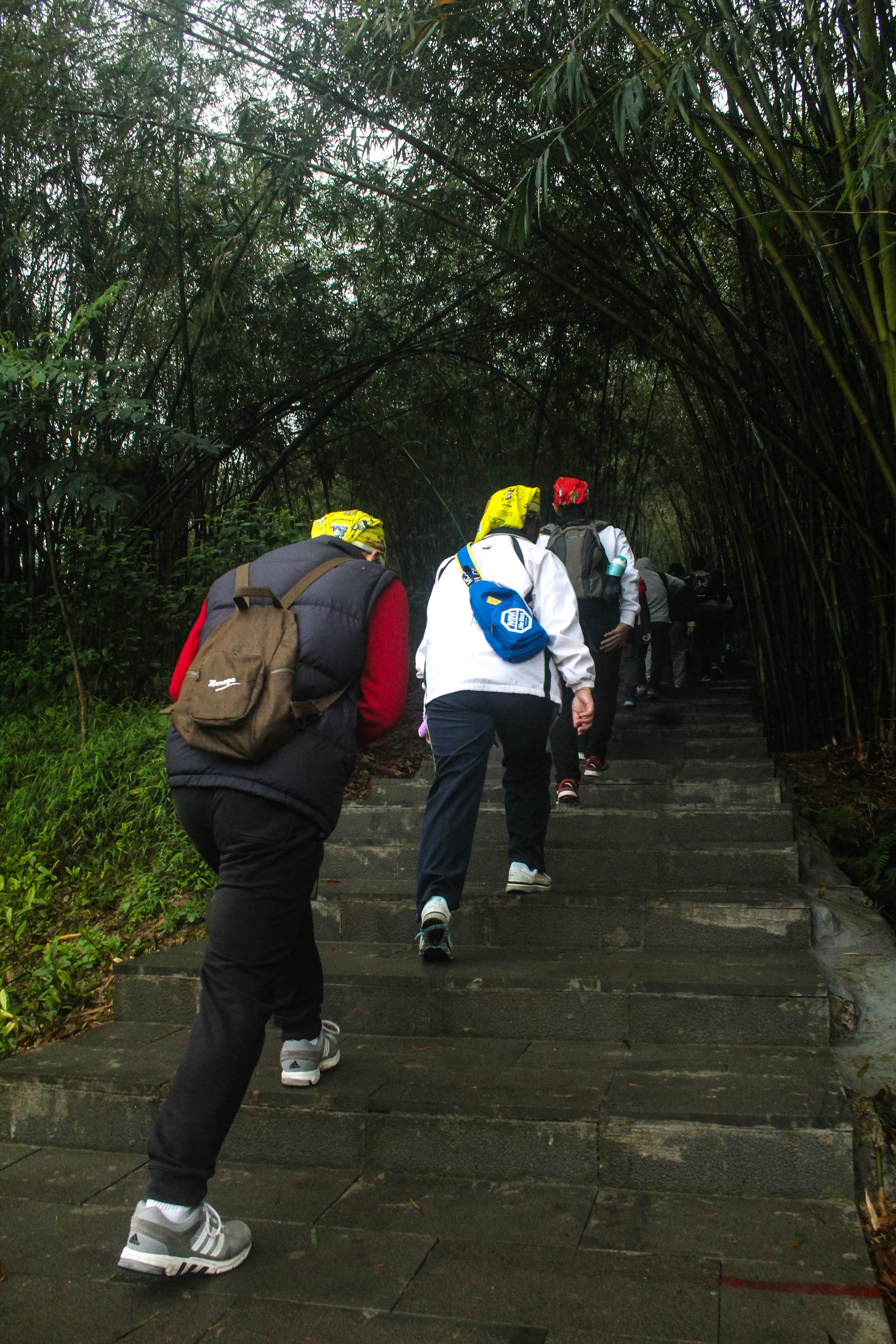 一切准备完毕后,在10:30分,10公里徒步正式开始。由于此次徒步是伴随着朦胧的细雨进行的,为了安全起见,将终点和起点做了对调,从终点出发。所以一开始大家面临的就是最辛苦最累的上阶梯。