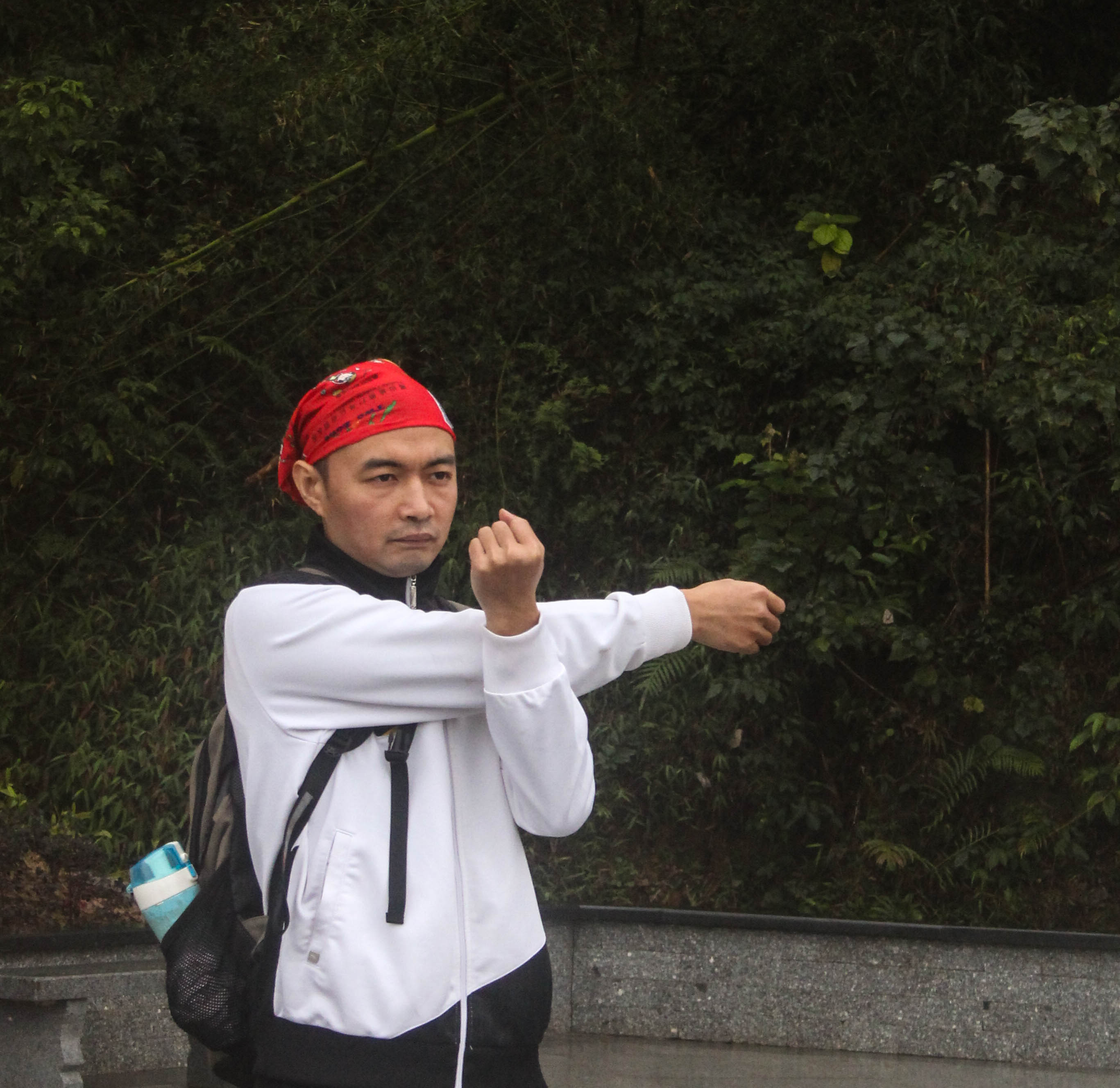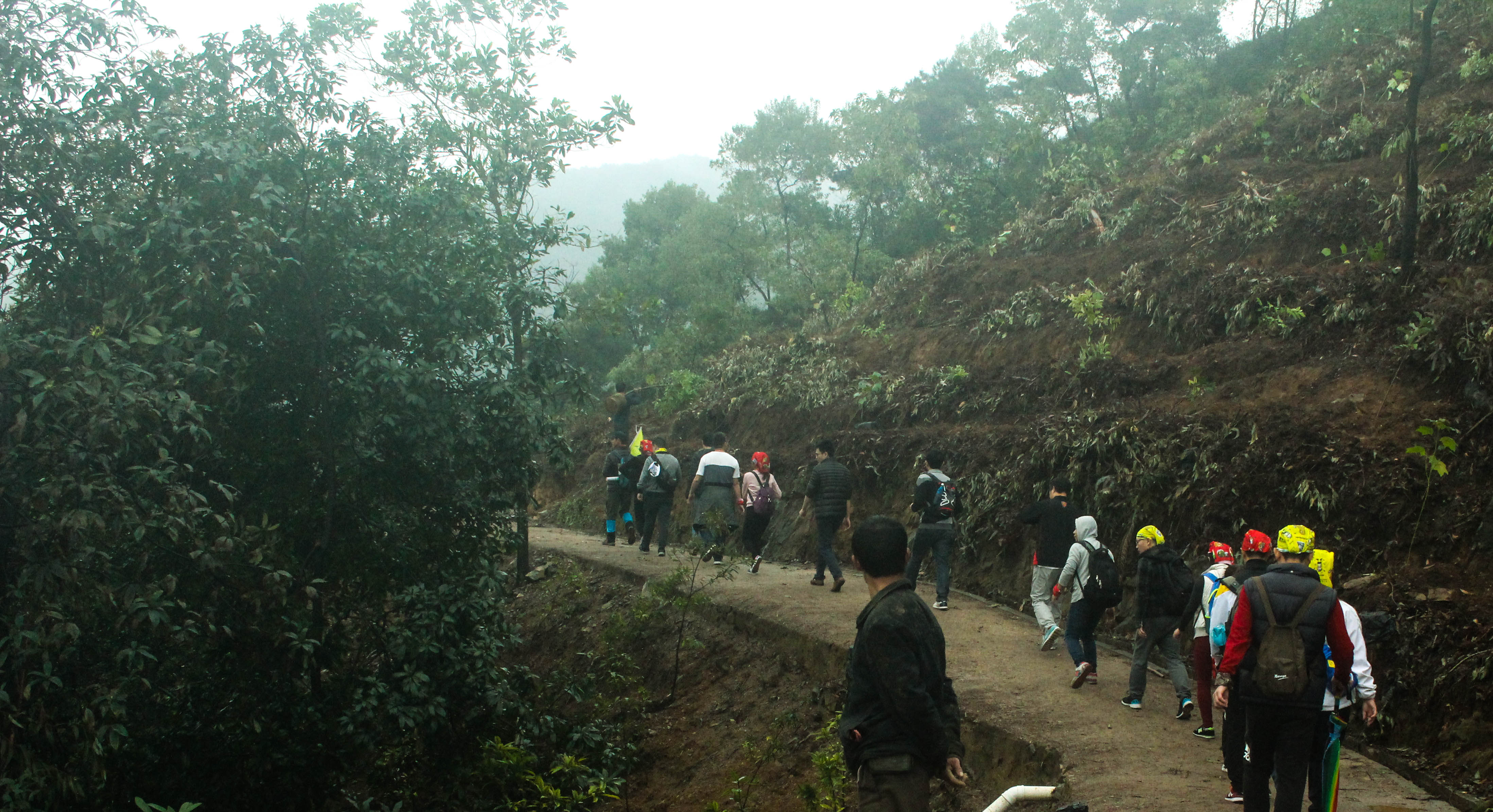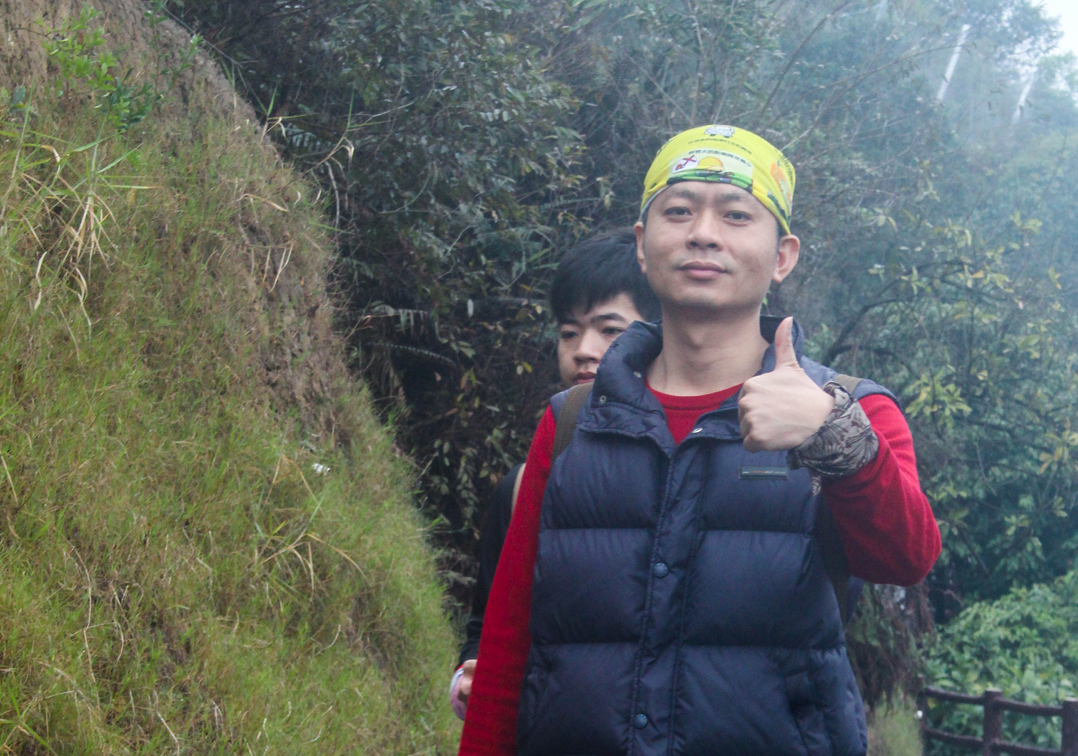 一切准备完毕后,在10:30分,10公里徒步正式开始。由于此次徒步是伴随着朦胧的细雨进行的,为了安全起见,将终点和起点做了对调,从终点出发。所以一开始大家面临的就是最辛苦最累的上阶梯。