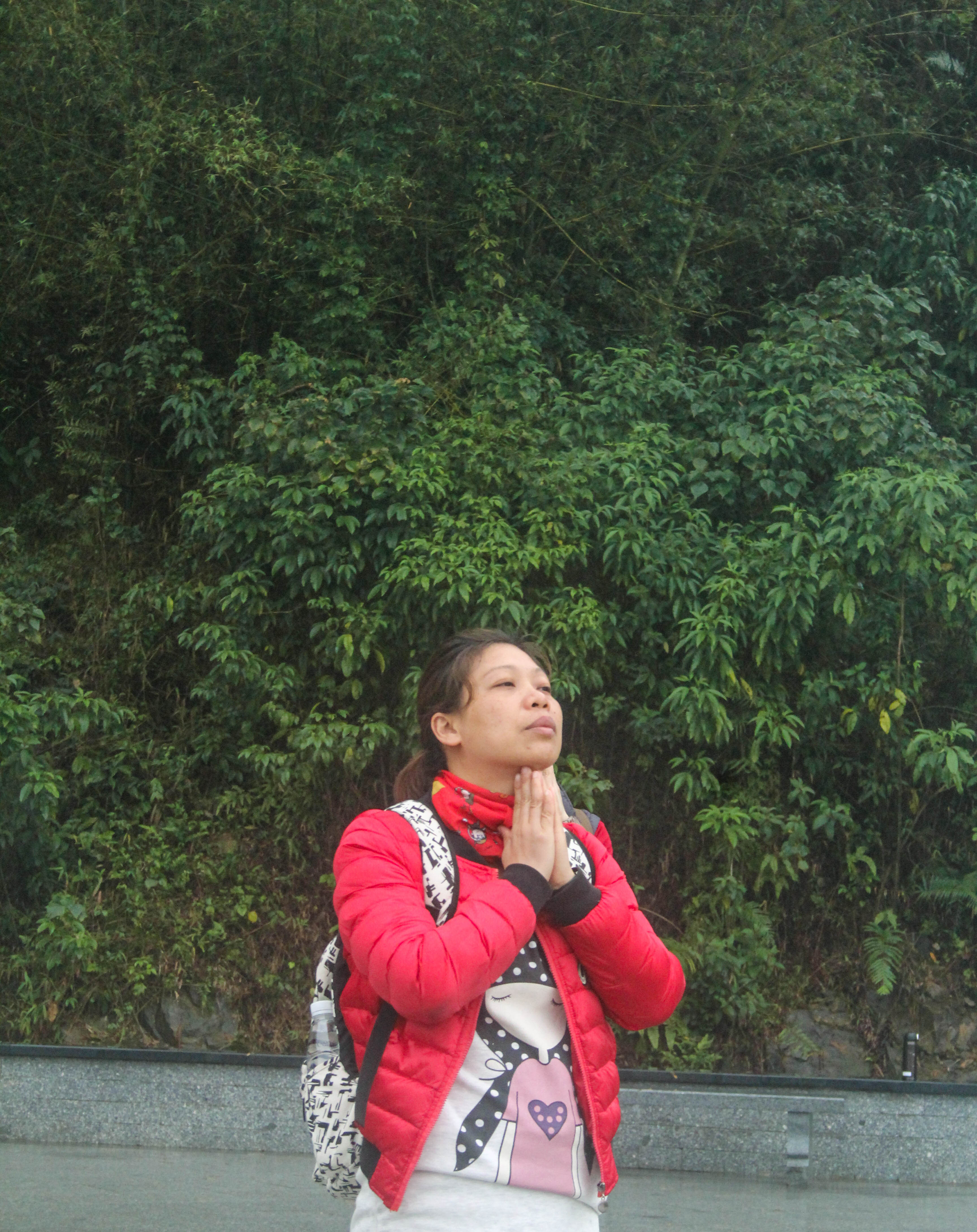 一段阶梯路程以后,大家已经气喘吁吁。但是坚持过来的大家也慢慢的发现,阶梯开始慢慢延续成了上坡再延续出了可以舒适行走的平地和下坡路。