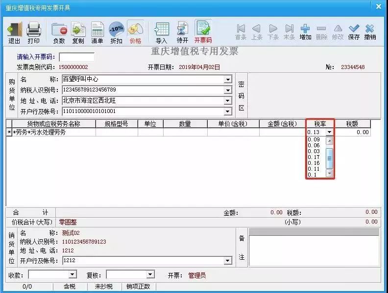 发票填开界面的税率,新增的税率排在前面,旧税率依然存在。