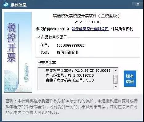 升级后开票软件版本为V2.2.33.190318,升级后新版软件如下图: