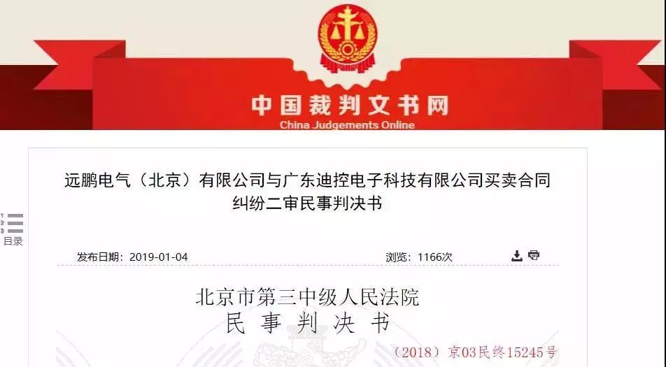 远鹏电气(北京)有限公司与广东迪控电子科技有限公司买卖合同纠纷