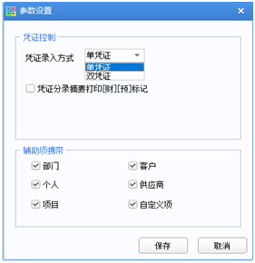 具体操作:点击‘平行记账’-‘参数设置’,可切换凭证录入方式。