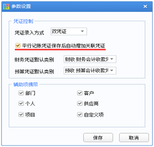 填制财务会计分录并保存凭证后,根据“参数设置“是否勾选“平行记账凭证凭证保存后自动增加关联凭证”,来生成关联凭证。如:勾选,则保存凭证后,系统自动生成关联凭证;反之,则需手动在填制凭证界面上,点击“增加”--”平行记账“节点来生成关联凭证。