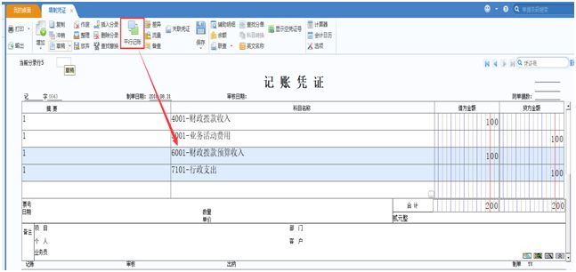 填制财务会计分录后,点击“平行记账“按钮,在当前凭证中自动生成预算分录行。